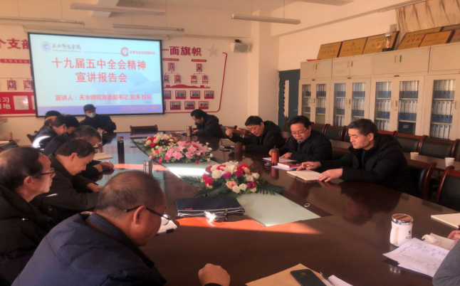 12月23日下午,党委副书记、校长安涛在4号教学楼208会议室为特级精品毛片免费观看教师作党的十九届五中全会精神宣讲报告会。