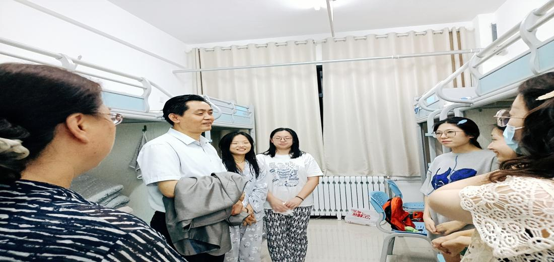 王贵禄院长和两位老师对新生宿舍情况进行视察并提出合理建议,把学生的安全放在第一位,充分了解新生在住宿方面的需要和问题。同时给大家提出要求,要保持宿舍的整洁有序,以此营造良好的学习环境。