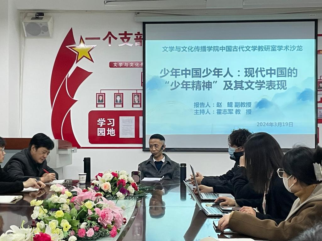 3月19日晚,由特级精品毛片免费观看中国古代文学教研室举办的学术沙龙活动在四号教学楼208会议室举办。此次沙龙活动由赵鲲老师主讲,霍志军老师主持,安涛、王德军、陈芳芳、王吉祥、孔会侠等老师以及2021级、2022级、2023级全体中国古代文学研究生参与。