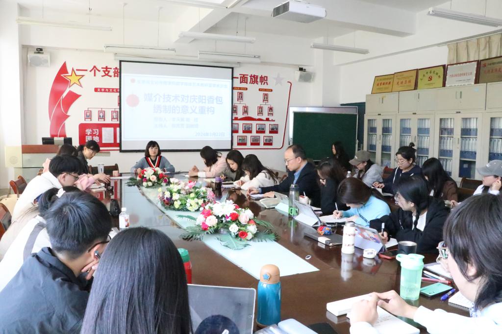 数字媒体艺术教研室和网络与新媒体教研室邀请李天英教授作了题为《媒介技术对庆阳香包绣制的意义重构》的学术报告。李天英表示庆阳香包绣制是我国非物质文化遗产之一,随着互联网的普及和传播媒介的不断丰富,媒介技术使庆阳香包绣制焕发出了新的生机,也为其创新性发展带来了新的机遇。她还与师生共同探讨了庆阳香包绣制的属性及“给予表达”、媒介技术介入后庆阳香包的“流露”表达以及媒介技术对庆阳香包绣制意义重构的必然性。