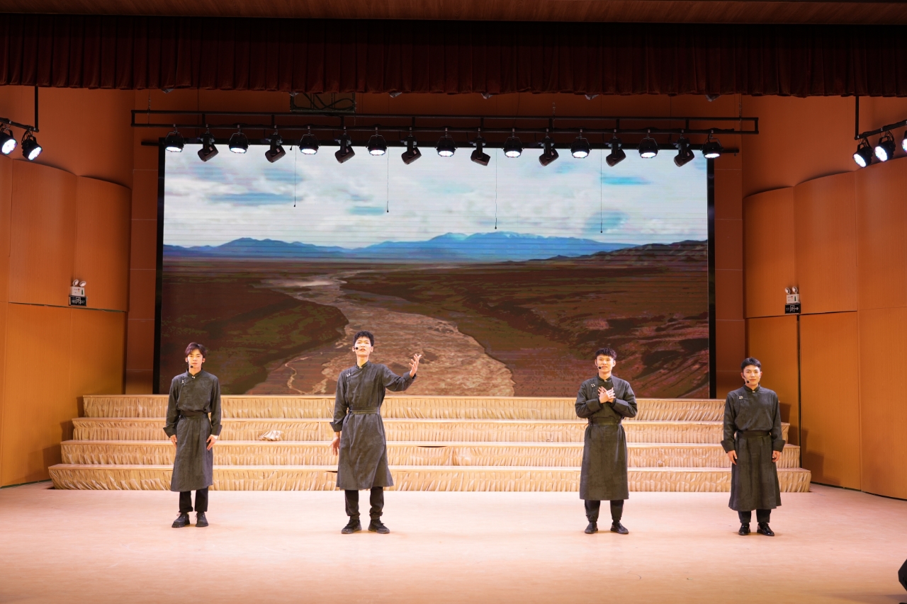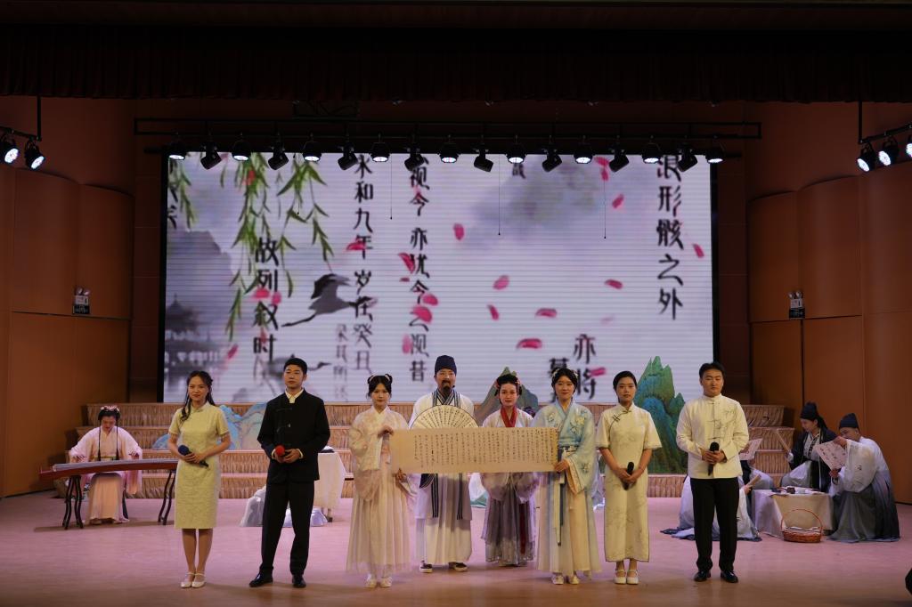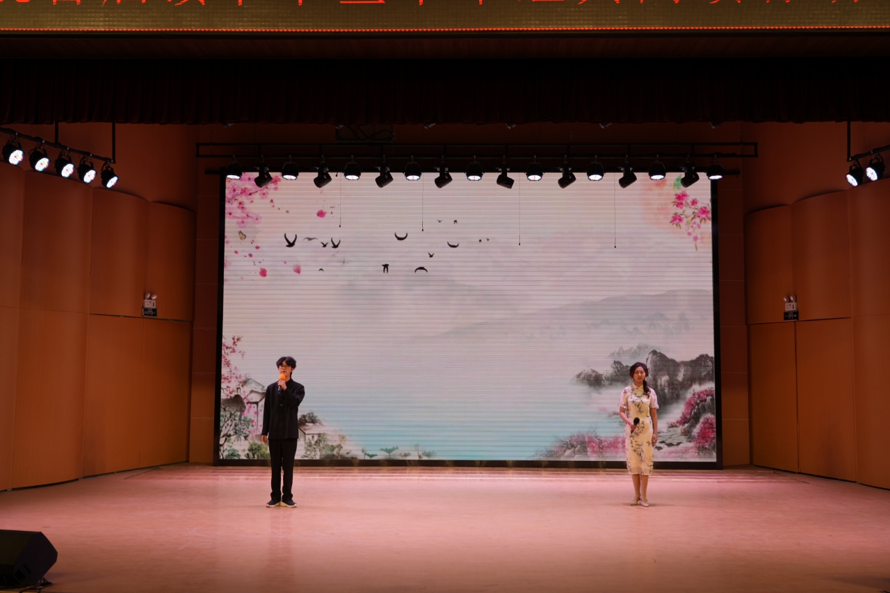 文传学院教师孙菻、研究生朱思维担任文艺演出环节的主持人。“最美人间四月天,春风漫卷书香来”,主持人承上启下,强调了晚会主旨,感谢在场嘉宾的到来,并串联介绍了本次晚会的每一个精彩的文艺节目。