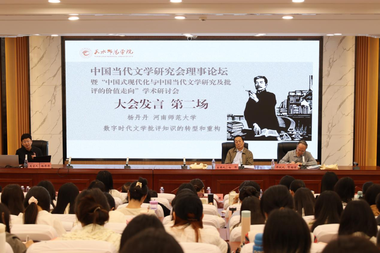 2024年于天水师范学院一号报告厅9月14日上午10:30—11:50召开中国当代文学研究会理事论坛暨“中国式现代化与中国当代文学研究及批评的价值走向”学术研讨会第二场。本场会议由白烨担任主持人,贺绍俊担任评议人,马永强,韩春燕,杨丹丹三位专家发言。