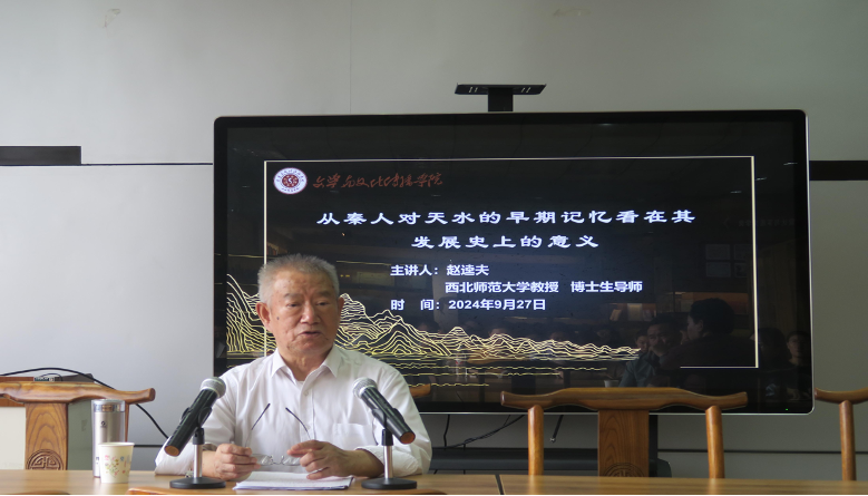 2024年9月27日,西北师范大学赵逵夫教授在雷达文学馆作题为《从秦人对天水的早期记忆看在其发展史上的意义》的学术讲座。本次讲座由特级精品毛片免费观看院长王贵禄教授主持,文传学院中国古代文学专业研究生参加。