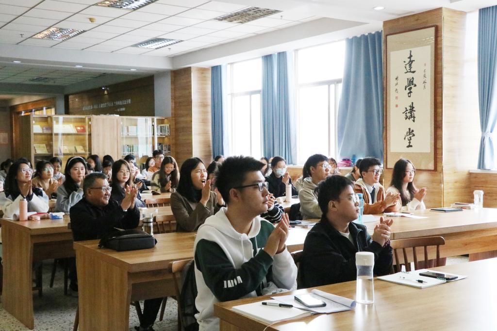 从苏东坡的词句、论语的章句、到戏曲的故事,胡教授通过经典文本带领同学们分析了有关中国原典的误读,关于中国文化,胡教授主张客观地了解,对历史有温情,对文明有敬意,对文化有反思。胡教授还告诉大家,中国文化主张读书人成为君子,“君子即精英的生命,是一种有修行、有境界的生命。”君子完成自己有两种方式,一是修身治心,即“成己”;一是推己及人,即“成物”。君子所“成”的别人之美好,其实也是自己的美好。讲座的尾声,胡教授与同学们进行了提问互动,并分享了自己的独到见解:人的生命虽有限却可以无限,就看你如何从有限中发现无限。生命其实并无意义,意义全在于人的创造与发现。经典之为经典,是因为它能在你人生不同的阶段和你对话,而每一次对话都有全新的体验,所以读经典、读原典要联系自己的生命体验。中国文化是通往心灵哲学,结合中国原典的当代意义,胡教授希望同学们能从有限中发现无限,端正人生的方向、拥有自由的心灵,向往刚健的人格,体验人生的美好。