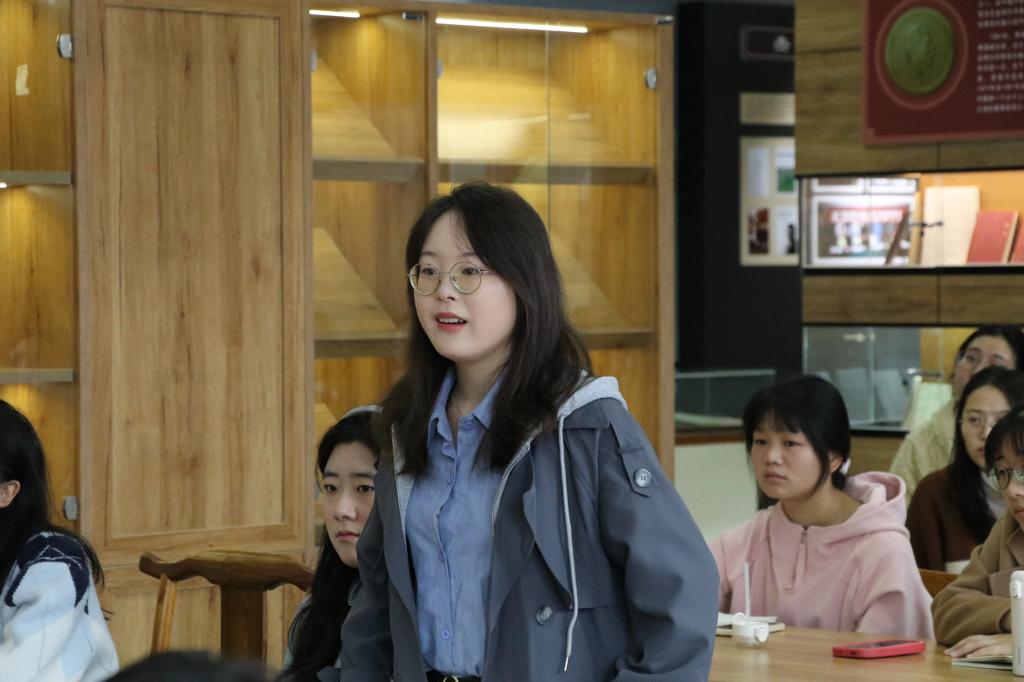 其次,胡教授以苏东坡与李白诗,以及《论语》中两句话为例,分析了其中的误读现象并探讨了什么是正解。“《前赤壁赋》里,苏轼以‘盖自将即其变者而观之,则万物曾不能以一瞬;即其不变者而观之,则物与我皆无尽也’,大家怎么理解‘我皆无尽’?”同学们纷纷发表自己的观点。胡教授指出,现代人与古人的思维方式不一样,想要靠近古人的原意,读古人写的注释是一个比较好的方法。“如何理解《论语》中‘子在川上曰:逝者如斯夫,不舍昼夜’?”一番讨论后,胡教授告诉大家,近代以后,这段话仅被解读为一句“时间过得真快呀”,这就是一种误读,是“经典浓度被稀释”,让经典失去了原有的魅力。胡教授还以戏曲举例,《白蛇传》中的小青、《西厢记》中的红娘、《玉簪记》中的老艄公、《霸王别姬》中的虞姬,都体现了中国文化的人伦精神、崇高人格的“成全”精神。