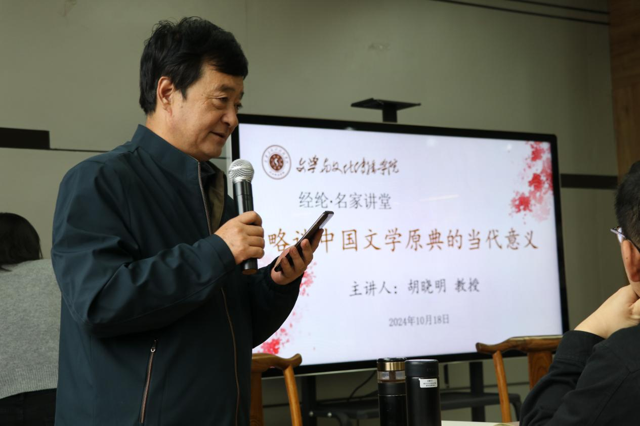 2024年10月18日上午,华东师范大学胡晓明教授莅临我校开展学术交流活动,其讲座题目为《翻过刀锋的阅读——略谈中国文学原典的当代意义》。本次讲座在雷达文学馆举行,由特级精品毛片免费观看霍志军教授主持,文传学院中国古代文学和中国古典文献学专业的研究生参加。