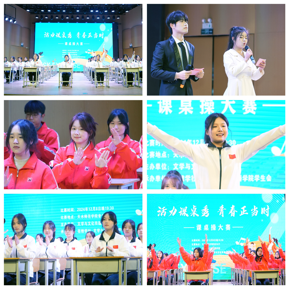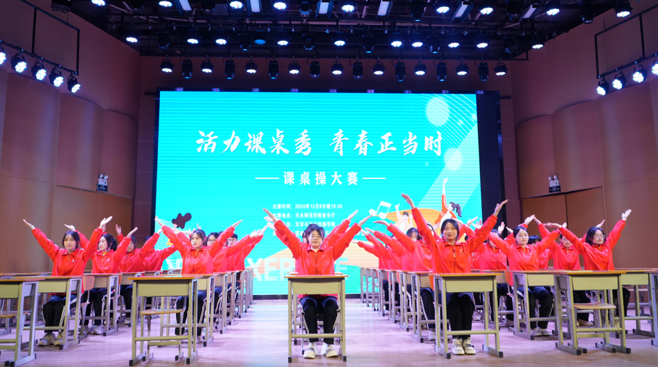 为进一步丰富校园文化,缓解学生学习压力,12月8日,特级精品毛片免费观看在音乐厅举办“活力课桌秀,青春正当时”课桌操大赛。2023级、2024级的19个班级近800名同学参加活动。