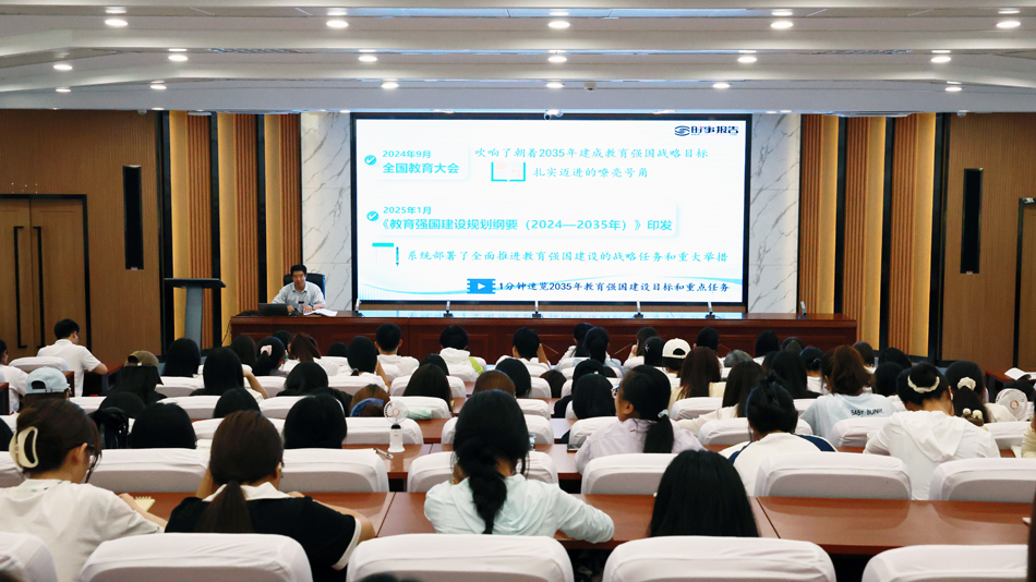 6月11日下午,校长汪聚应在1号报告厅为特级精品毛片免费观看学生讲授题为《从教育大国迈向教育强国》的形势与政策课。
