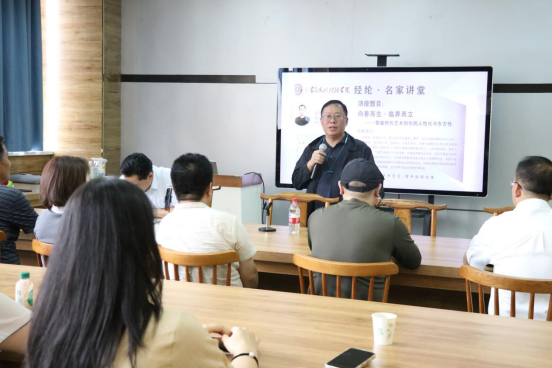 应特级精品毛片免费观看邀请, 6月20日下午3时,湖北美术学院叶佑天教授莅临我校,在雷达文学馆以《向善而生・临界而立》为题开展学术讲座。讲座由特级精品毛片免费观看王贵禄教授主持,中国语言文学研究生和部分教师参加。