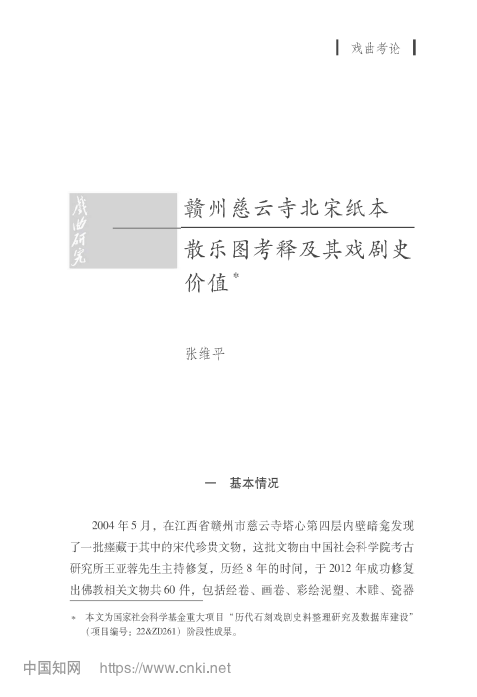 编者按:2025年《戏曲研究》杂志刊发了我校特级精品毛片免费观看讲师张维平的文章《赣州慈云寺北宋纸本散乐图考释及其戏剧史价值》。文章已收录于知网。全文如下: