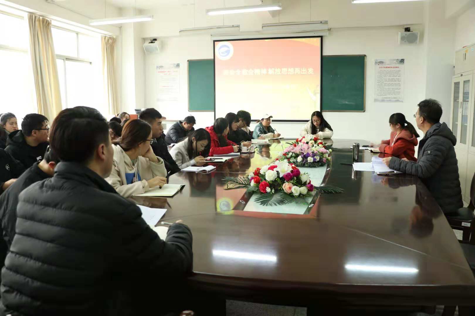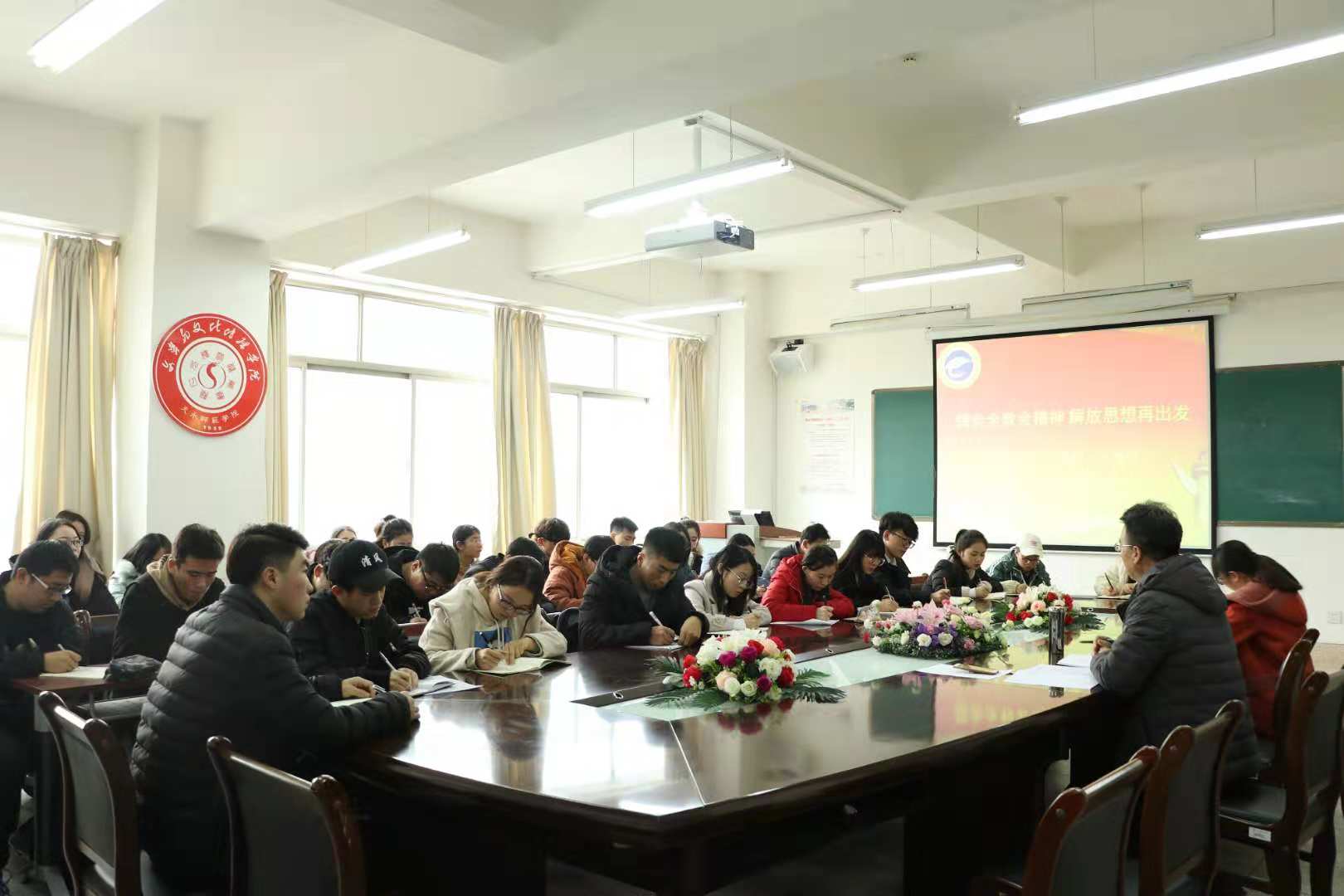 赵铁成副书记从领会全教会精神和解放思想两个方面向学生们进行了宣讲,要求当代大学生积极主动地学习习近平总书记系列重要讲话精,解放思想,与时俱进,紧跟时代,做时代新人。同时,他就如何充分利用互联网扩展学习平台、利用新媒体建设学习氛围展开了深入讲解。