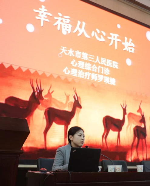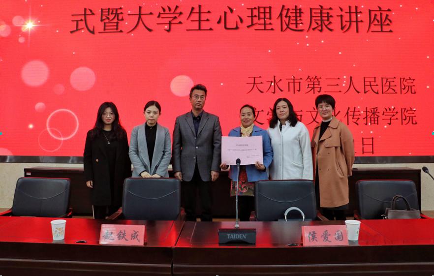 活动第一项由杜青老师阐释本次活动的主题——“幸福从心开始”。活动第二项由文传学院党总支副书记赵铁成与天水市第三人民医院副院长侯爱国女士进行图书捐赠交接仪式。特级精品毛片免费观看于10月30日起在校园内组织捐书活动,共计捐赠书籍600本。活动第三项由天水市第三人民医院副院长侯爱国女士介绍医院概况,同时也表达了对我院师生的感谢。活动第四项由心理治疗师罗瑛婕医生做以“幸福从心开始”为主题的讲座。