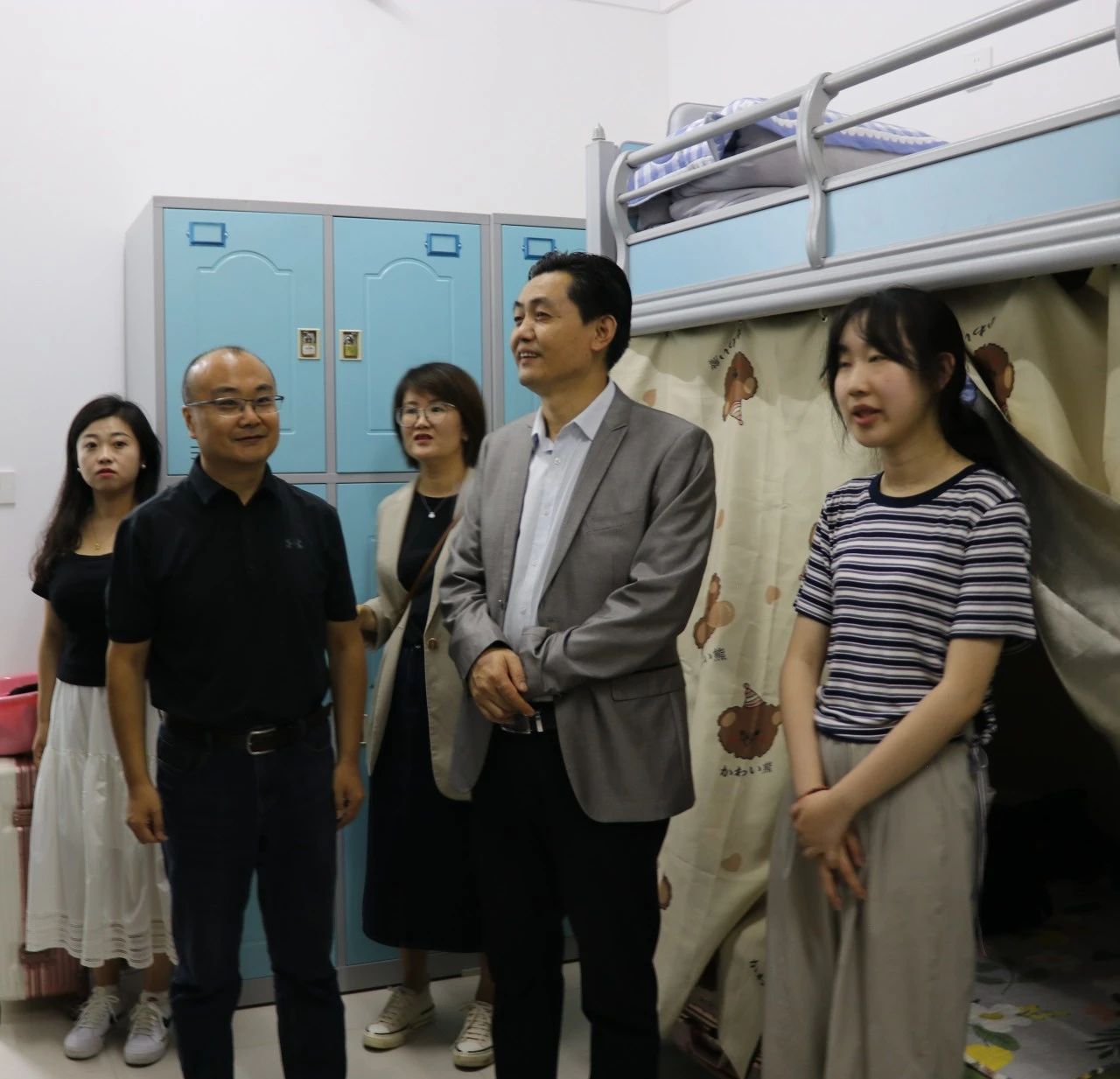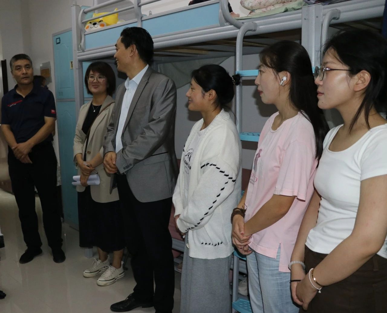 老师们分别走进寝室看望了同学们,热切询问新生的住宿情况,听取新生关于住宿的反馈,并教导同学们要互帮互助、拧成一股绳,打造积极向上、和谐友善的优良宿舍氛围。叮嘱新生要调整好状态,以饱满斗志投入即将到来的学习生活,在日常生活中也养成良好的生活习惯,做好人身财产等各项安全保护措施。