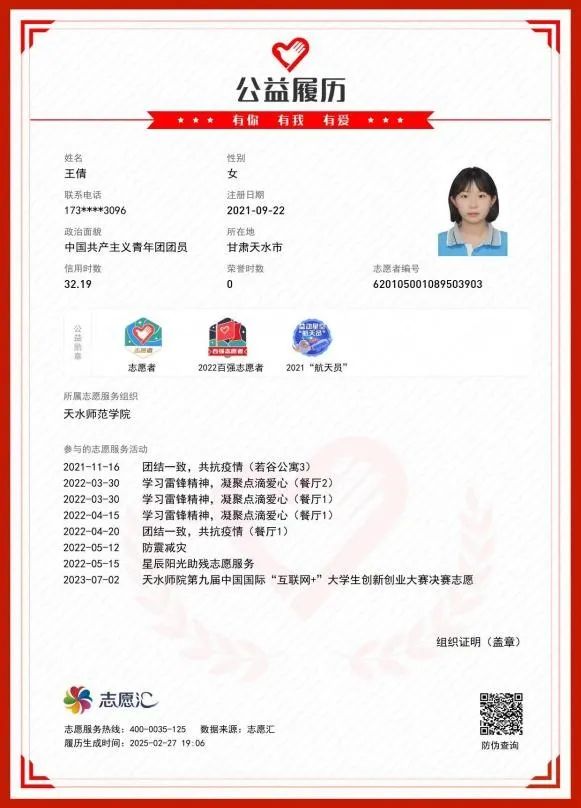 在思想成长的道路上,她一刻也未曾停歇。如饥似渴地学习马克思主义理论,力求将其精髓融入生活的每一处细节。课堂上,老师的讲解让她对理论有了初步的认知;课后,她通过阅读大量的经典著作、关注时事新闻,不断加深对理论的理解。2024年,她光荣地成为一名中共党员时,心中的使命感愈发强烈,她深知,这不仅是一份荣誉,更是一份沉甸甸的责任。从那以后,她时刻以党员的标准严格要求自己,积极参与党组织的各项活动,虚心向身边优秀的党员同志学习,努力在思想和行动上成为同学们的榜样。