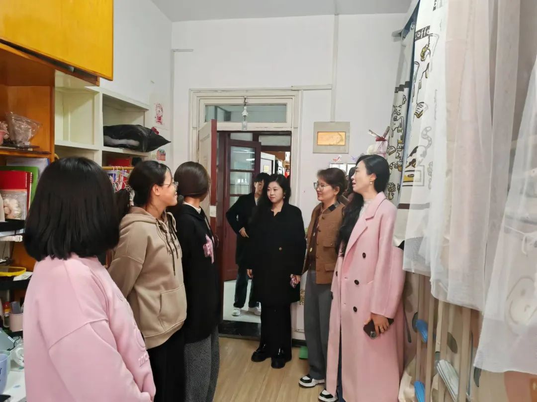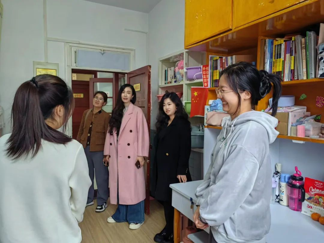 11 月 14 日,特级精品毛片免费观看党委副书记董妍,团委书记孔媛媛、辅导员杜青、王亚民深入学生宿舍,开展走访慰问活动,为同学们送去温暖与关怀。