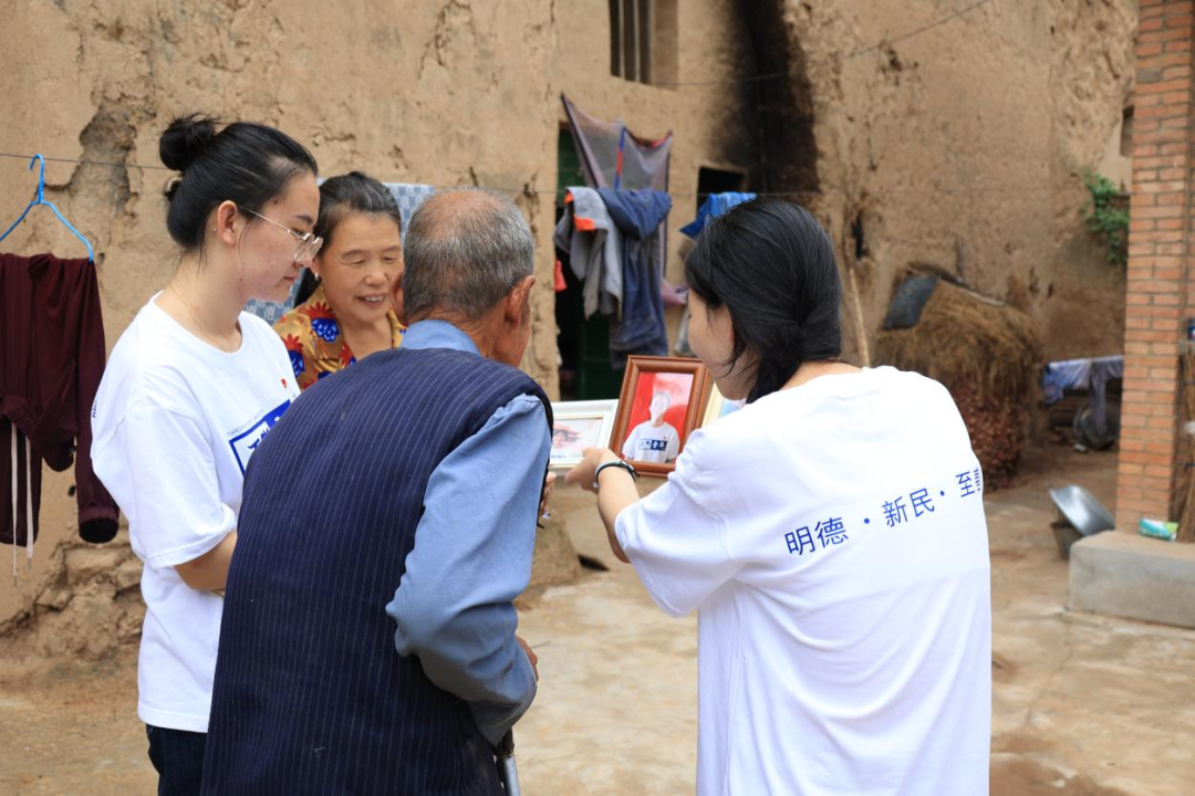 7月28日,为期一周的实践活动接近尾声,实践队员共走访了45户人家,拍摄并发放了56个相框,80张照片。活动末尾,所有照片冲洗打印并装裱成框,精美的相框里那一张张饱经岁月沧桑的脸笑意盈盈。村民们陆陆续续来到村委会取走相片,连声向队员们说着“谢谢”。我们微笑着鞠躬,一股浓浓的暖意流淌在我们彼此的心田,温馨而甜美……