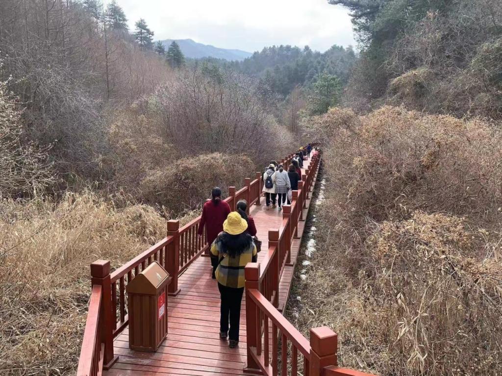 (在登山结束后大伙来到了仙人湖,此时的湖面上覆盖着薄薄的冰层,在阳光的照耀下晶莹剔透)