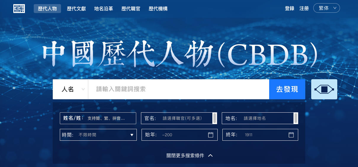 中国历代人物传记资料库CBDB及中国历代文献数据库