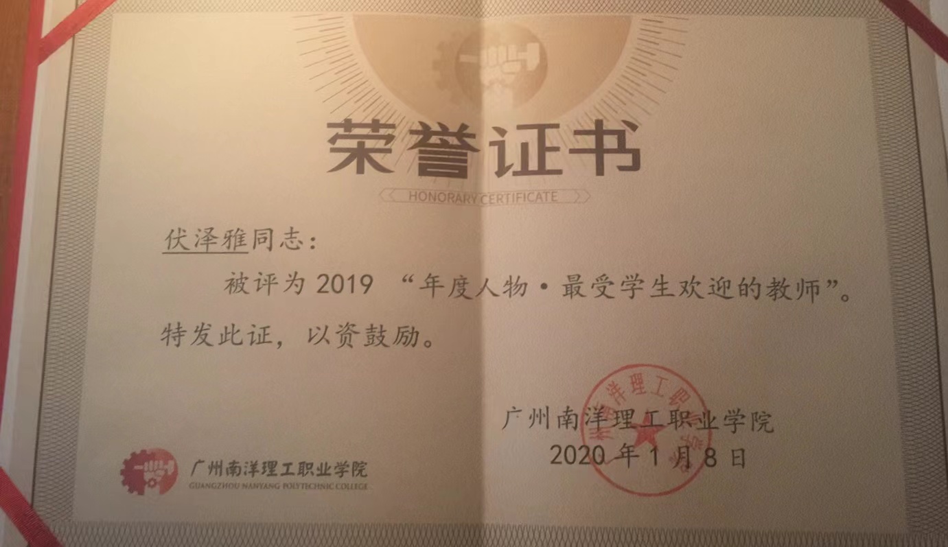 伏泽雅,男,1994年出生,现任广东工程职业技术学院人工智能学院团委书记。内蒙古师范大学国交中心外聘教师、蒙古国电影艺术学院硕士研究生导师、蒙古国可汗国际学院外聘顾问。被广东省教育厅、甘肃省教育厅授予优秀指导教师荣誉称号、指导学生作品荣获教育部三等奖、教育厅一二等奖自2016年至今,先后指导学生团队参赛各类国赛、省赛,荣获国家级一等奖一项、国家级三等奖一项、国家级优秀作品奖奖一项,广东省一等奖两项、二等奖五项、三等奖一项、优秀奖两项。指导学生在互联网+创新创业大赛广东赛区比赛中荣获省级优胜奖。先后被甘肃省教育厅、广东省教育厅授予“优秀指导教师”荣誉称号。