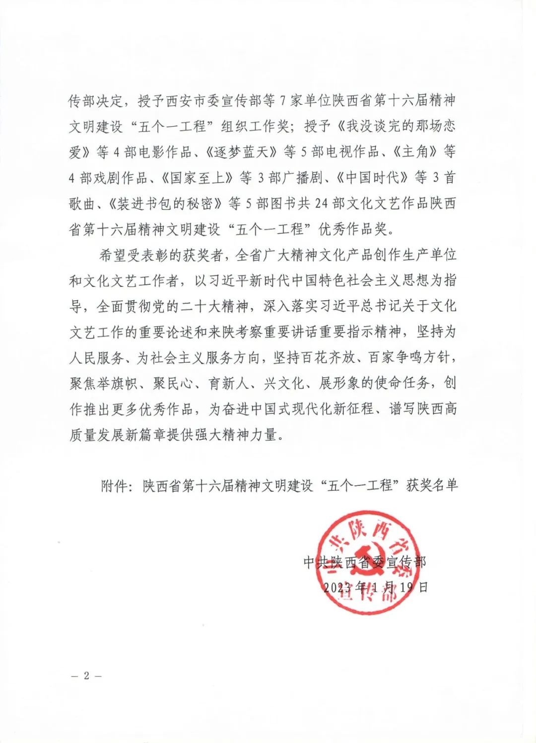 近日,中共陕西省委宣传部公布陕西省第十六届精神文明建设“五个一工程”获奖名单,总社《历史作为镜像:习近平文艺讲话与新时代中国文艺复兴》(王贵禄 著)荣获“五个一工程”优秀作品奖。